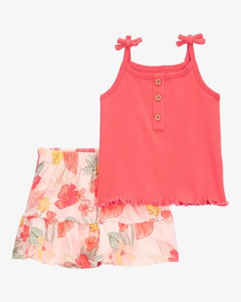 / Conjunto de 2 piezas para bebé: camiseta de tirantes y falda pantalón floral