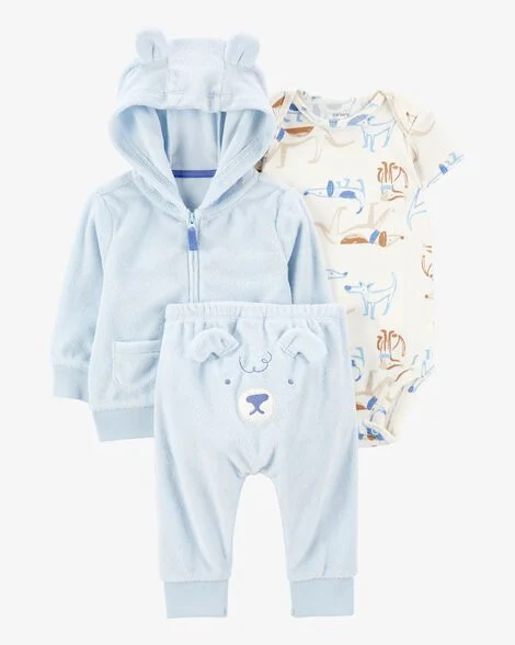 / Conjunto de 3 piezas de Chaqueta Celeste 9 Meses, 12 Meses