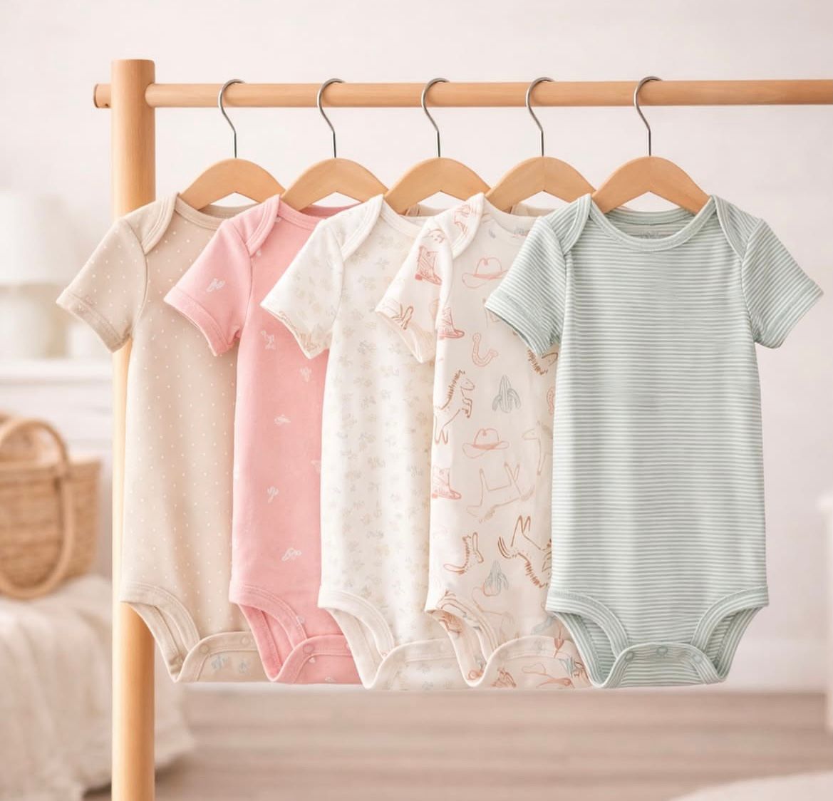 Pack de 5 bodies de algodón con estampado de vaquera – Blanco/Azul/Rosa
