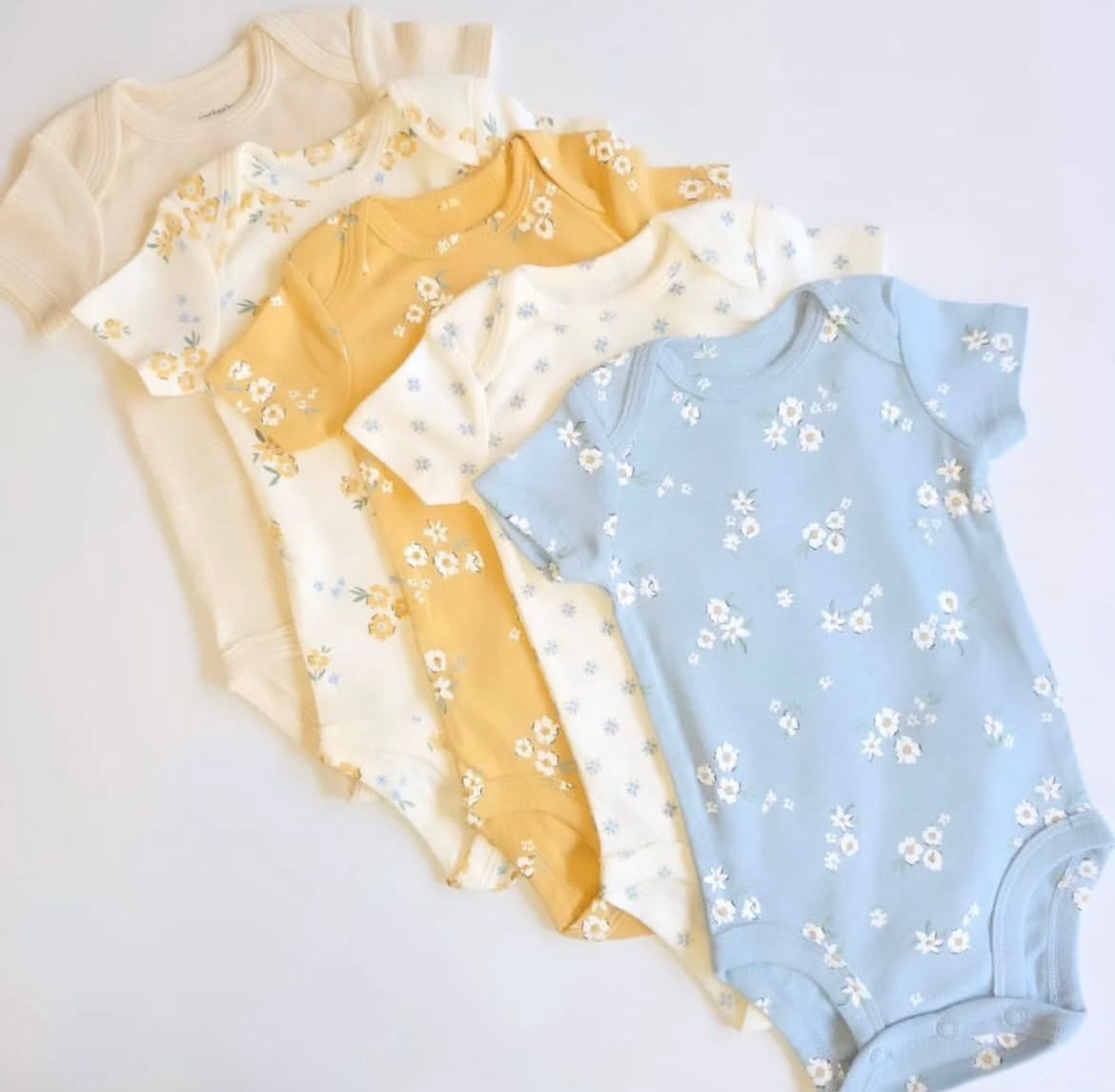 Pack de 5 bodies de algodón de manga corta con estampado floral