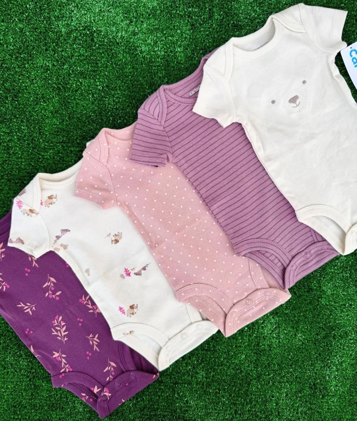 Pack de 5 bodies florales de oso para bebé niña – Blanco/Rosa/Morado